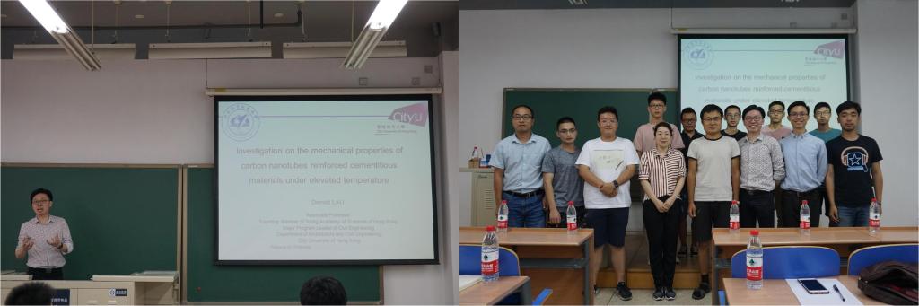 PhD Supervisor Prof. Denvid Lau visited Department of Civil Engineering at Beihang and gave a seminar entitled “Effect of elevated temperature on the mechanical properties of carbon nanotubes reinforced cementitious materials”.