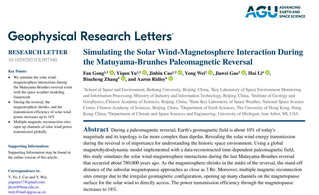 Congratulations to PhD student Mr. Fan Gong for getting his paper published in Geophysical Research Letter.