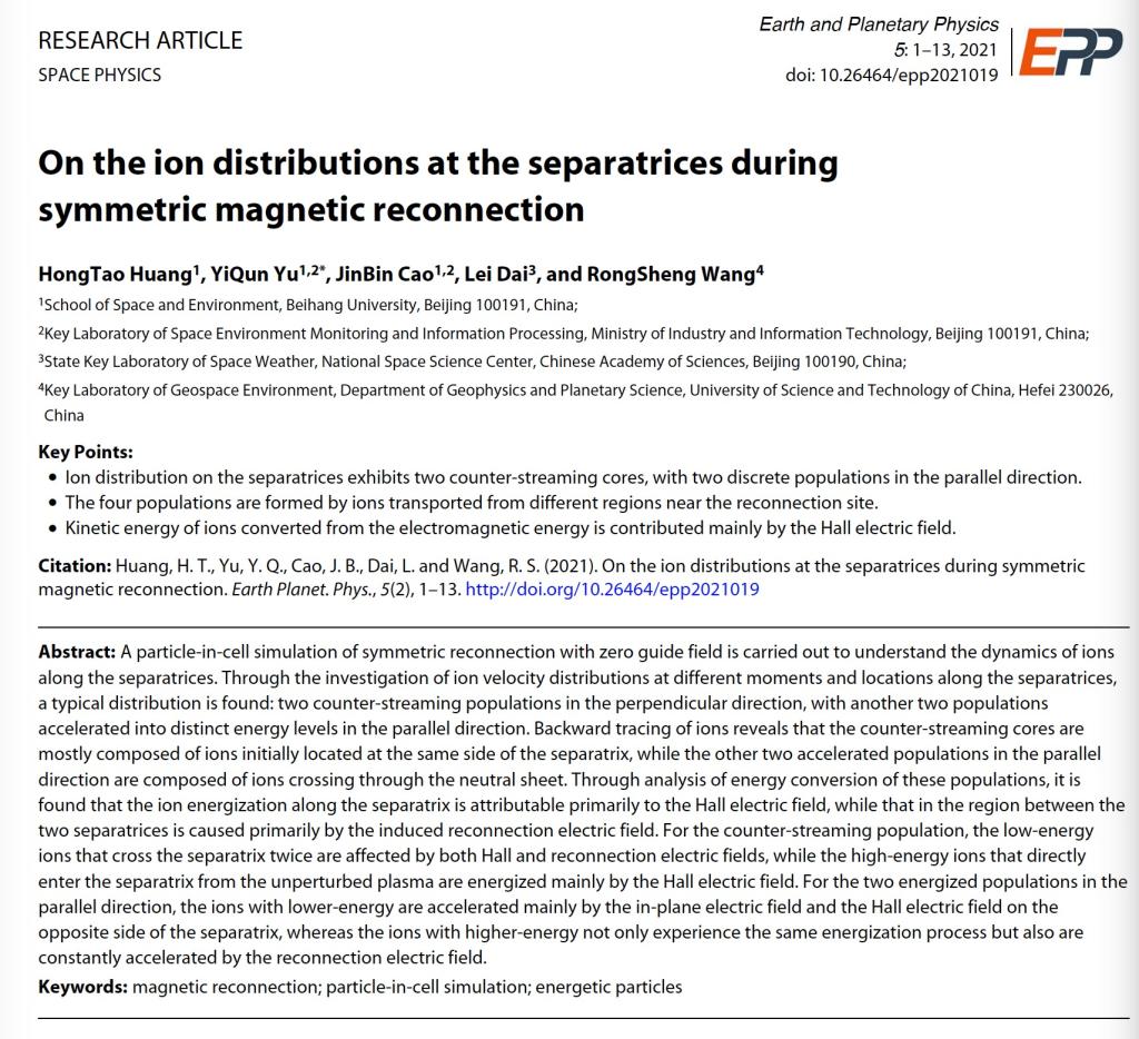 Congratulations to my PhD student Mr. Hongtao Huang, for his recent publication in the journal of Earth and Planetary Physics (EPP).