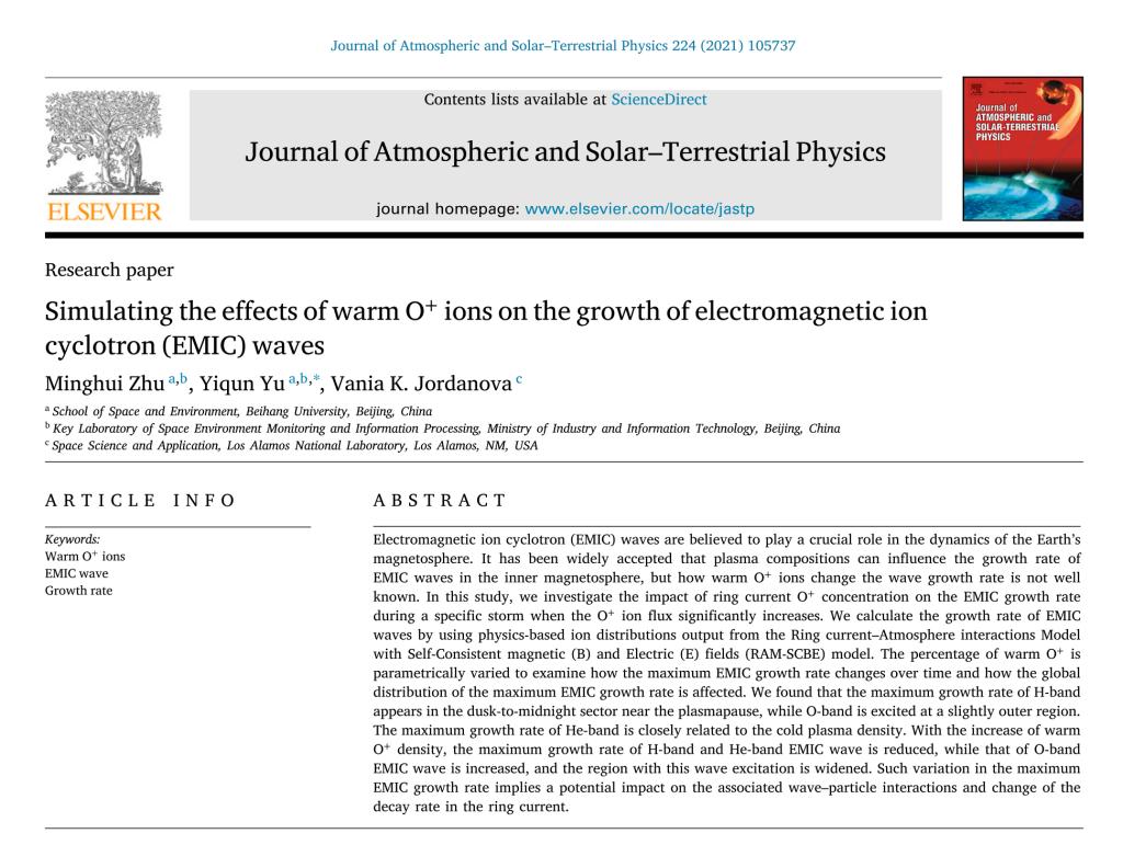 Congratulations to PhD student Mr. Ziming Wei for getting his paper published in Journal of Geophysical Research: Space Physics.